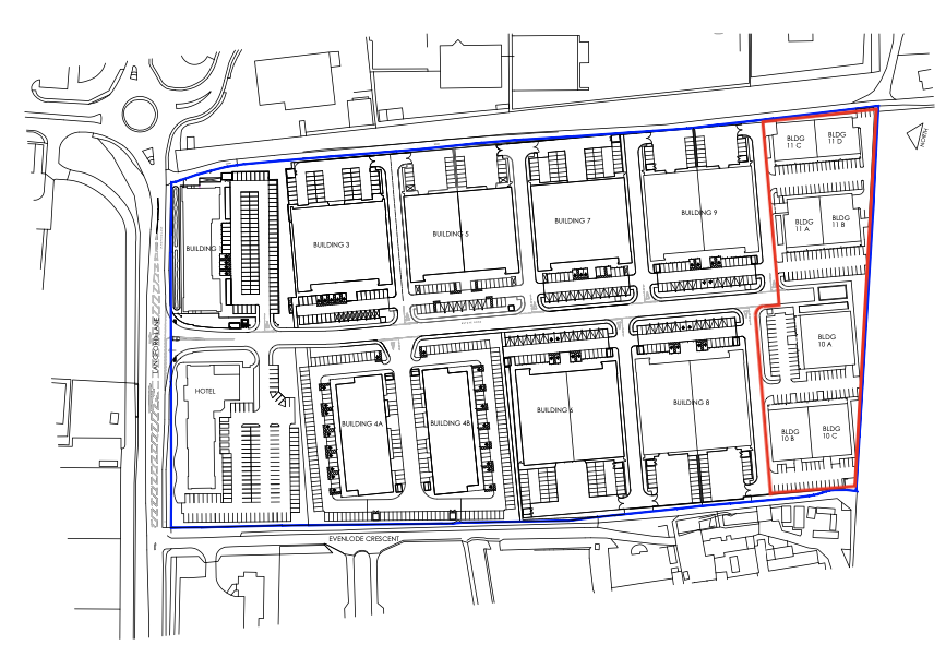While the overall quantum of approved development remains effectively unchanged, the updated plans allow Buildings 10 and 11 to be redesigned as four standalone units, which are subdivided into seven smaller units, each separated by internal parking, rather than two larger buildings originally envisaged. This provides greater flexibility for incoming occupiers seeking a range of unit sizes.